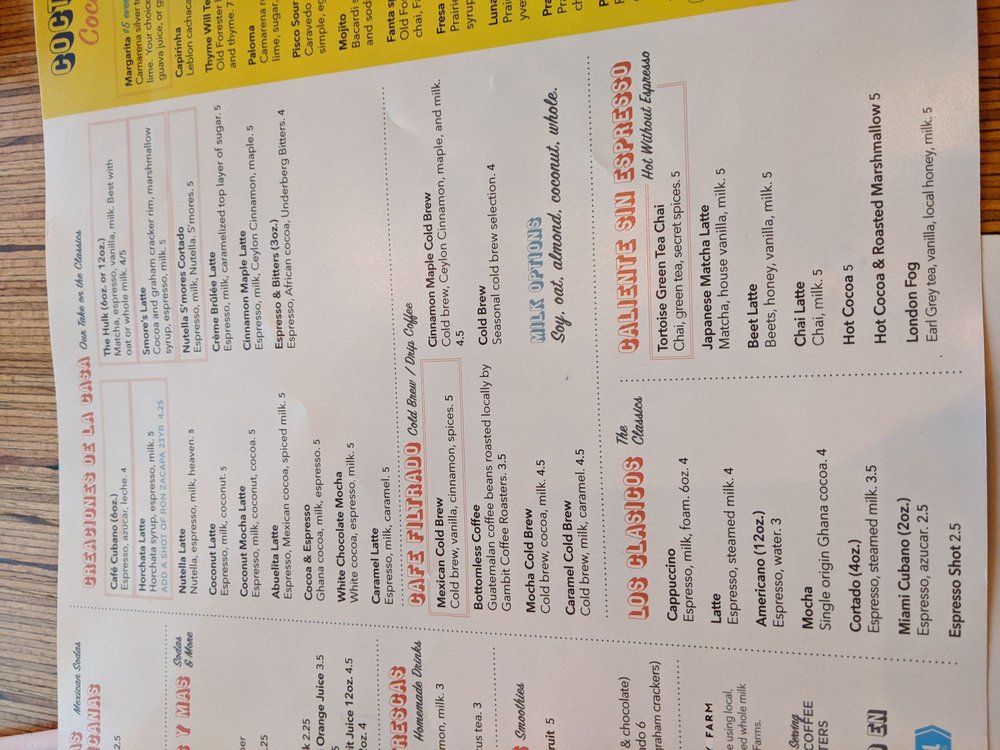 Single origin cacao, espresso, underberg bitters, demerara, vanilla, steamed milk. served hot unless indicated iced.